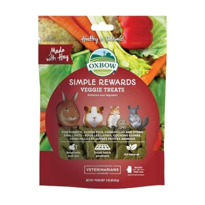 PREMIUM INGREDIENTS: Oxbow Simple Rewards are made with wholesome, nourishing ingredients and high fibre hay VETERINARIAN RECOMMENDED: Formulated with the guidance of leading veterinarians and nutritionists, Feed 1-2 treats per day FORMULATED FOR SMALL PETS: Combines the irresistible flavour of wholesome vegetables with high fibre Timothy Hay NO ADDITIVES OR PRESERVATIVES: Oxbow Treats do not contain artificial flavouring, colouring, or ingredients OVEN-BAKED: Wholesome, crunchy treats that are oven-baked that satisfy your pet's instinct to chew