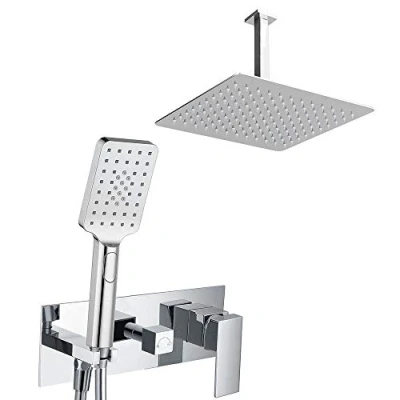 Oxen 153504 2 Way Recessed Tap (Upper and Manual Shower) Ceiling Outlet Quevedo Model, Chrome Gloss, 1