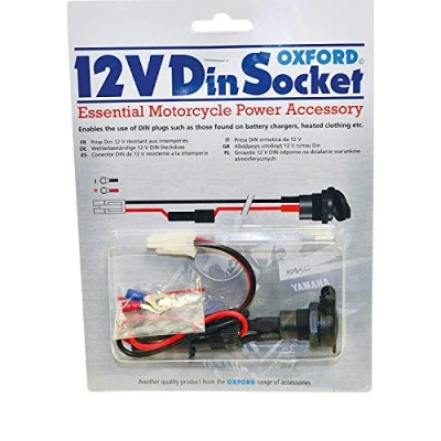 Weather-resistant 12V Din socket for motorcycles (standard on BMW), ATVs, snowmobiles, etc. Enables the use of din plugs such as those found on battery chargers, heated clothing, etc. Compatible with the Oxford plug lead (OF704) Compact thread diameter (18mm⌀) is designed for panel mounting Maximum output 120W / 10 A