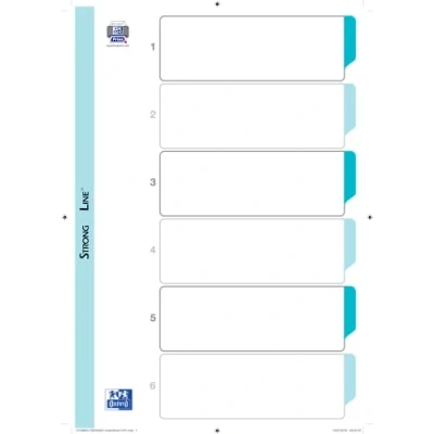GUARD: A white cover page, customizable on our site, allows you to identify the contents of the dividers; it is reinforced Strong Line, for better resistance Tabs: The 6 coloured tabs, for monthly organization, allow you to quickly and easily identify the contents of the dividers Perforation: The dividers are perforated with 11 holes for easy insertion into a binder; they adapt to any type of binder because their punching is universal Resistance: The tabs and the punching strip are reinforced Strong Line; the tabs are laminated for greater resistance and they are suitable for everyday use COMPATIBILITY: A4XL size dividers are compatible with punched pockets; they do not protrude beyond the dividers and the tabs will always be visible