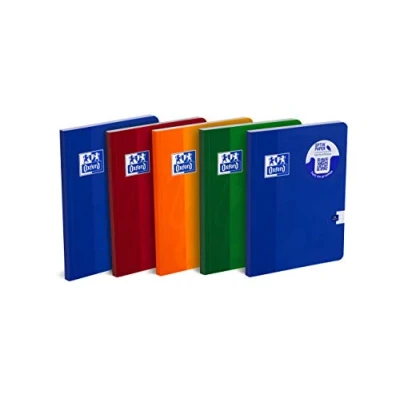 OXFORD 400017512 ESSE A4 Folder with Semi Hard Cover, 96 Sheets, Squared, Pack of 5 Assorted Colours