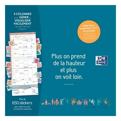 Calendar 16 months 1 month on two pages diary 329 stickers Large storage pouch Made in France