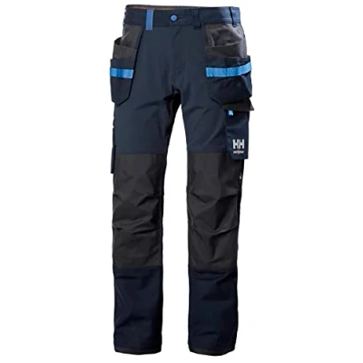 Amazon 4-way stretch fabric ! Lightweight fabric ! Hanging pockets with double lined bottom and nylon webbing for durability ! Broad center back belt loop for extra stability and strength ! Gusset in crotch for freedom of movement ! Plastic covered metal buttons ! Thigh pocket with fastener closure ! ID card loop ! Ruler pocket ! Reinforcement fabric at knee and bottom hem ! Articulated knees for optimal mobility ! Knee Pad pockets accessible from the outside ! Knee Pad position can be adjusted by 5 cm for optimal mobility ! Possibility to increase leg length by 5cm ! Reflective details