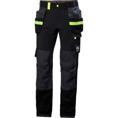Amazon 4-way stretch fabric ! Lightweight fabric ! Hanging pockets with double lined bottom and nylon webbing for durability ! Broad center back belt loop for extra stability and strength ! Gusset in crotch for freedom of movement ! Plastic covered metal buttons ! Thigh pocket with fastener closure ! ID card loop ! Ruler pocket ! Reinforcement fabric at knee and bottom hem ! Articulated knees for optimal mobility ! Knee Pad pockets accessible from the outside ! Knee Pad position can be adjusted by 5 cm for optimal mobility ! Possibility to increase leg length by 5cm ! Reflective details