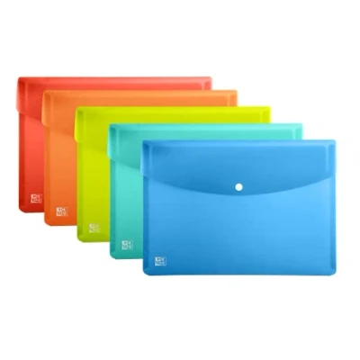 Oxford 5 x A5 Clear Plastic Document Wallets Colours Orange Red Blue Yellow Green