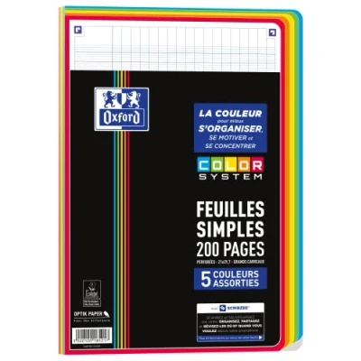 200 paes - Optik Paper quality, a unique extra white satin paper that does not bleed through for unbeatable writing comfort Assortment of 5 different coloured frames per pack: blue, green, yellow, orange and wheel Seyès tiles in 2 colours for better readability The sheets are perforated with 4 holes. They can be stored quickly and easily in a binder Rounded corners so that the paes do not get stuck 200 paes Optik Paper quality, a unique extra white satin paper, that ink does not bleed through, for unbeatable writing comfort