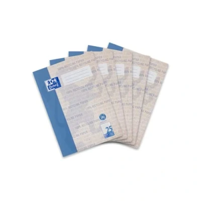 Oxford Exercise book with 25 ruling (lined with a white border outside) and in DIN A4 format Equipped with the best recycled paper (optic paper 100 percent recycled) without showing through ink on 16 sheets (32 writable pages) per booklet Stapled back wire to optimally write on all pages, rounded corners prevent unsightly kinks By wearing the blue angel, the notebooks guarantee high demands on environmental, health and use properties, and offer an outstanding writing experience with impressive whiteness thanks to the specially developed optic paper recycled Pack of 5 exercise books, ruling style 25