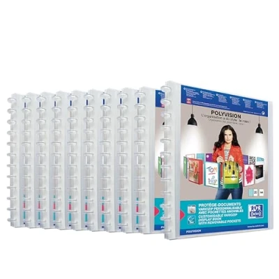 Oxford Polyvision display book includes 20 crystal clear pockets, with clear pocket on the front cover, for personalisation according to your wishes These cases are made of tear-resistant plastic and open at the top. Here you can easily insert your documents up to DIN A4+ format and easily create a presentation folder Thanks to the special vario-zip principle, you can also remove individual sleeves from the folder in a flash and change the order of the cases/papers easily and flexibly Ideal solution for presenting your documents professionally. The special features make it a practical and reliable choir or music folder, certificate folder or certificate folder You will receive 10 A4 ring binders with 20 sleeves, in transparent/colourless
