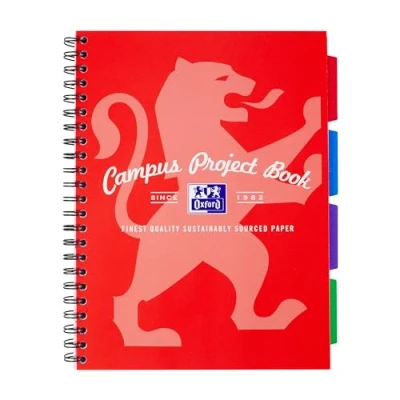 Oxford Campus, A4 Project Book, Notebook Lined with Dividers, 200 Pages, Red, Thick White Optik+ Paper