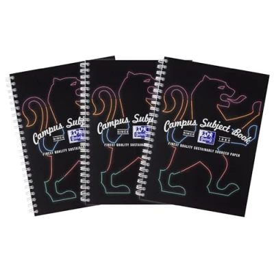 A4+ Subject book, 8 mm ruled with margin and perforated, punched 4 holes, 160 pages Thicker Whiter Optik Paper+: Write on both sides of the page with smooth quality Optik paper A4+ Subject book with different coloured sections to organise your notes by subject, Punched with four holes for easy filing Pack of 3 subject books in single colour: black Scribzee Enabled: With the Oxford Scribzee app for your Android or iOS device you can scan, save and share your notes, including filing your notes by colour or subject using the digital dividers