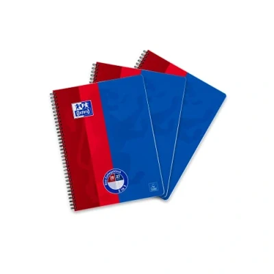 Oxford College Notepad School A4 Squared with Double Margin 80 Sheets Ruler Duo 3 Piece Blue/red