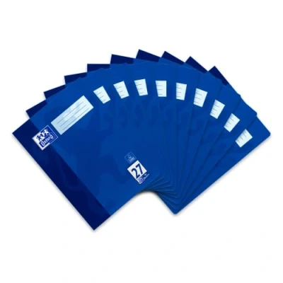 Oxford Exercise book with 27 ruling (lined with margin on the right and left) and in DIN A4 format With 16 sheets (32 pages), the exercise book offers a high level of writing comfort thanks to the silky-smooth, bright white look paper - no bleeding and the ink shines through Extra robust and refined, wipe-clean notebook covers that are therefore dirt and moisture repellent The notebook labels can be written on with ink. Rounded corners prevent unsightly kinks Pack of 10 exercise books, ruling style 27, certified with the EU Ecolabel