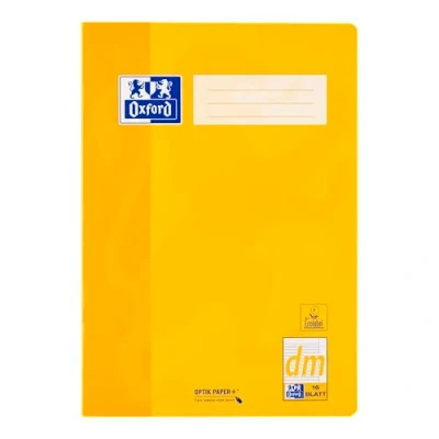 Oxford Exercise book with ruling dm (11) ‐ lined with a dotted (auxiliary) line above, for the transition to writing without guides With 16 sheets (32 pages), the exercise book offers a high level of writing comfort thanks to the silky-smooth, bright white look paper - no bleeding and the ink shines through Extra robust and refined, wipe-clean notebook covers that are therefore dirt and moisture repellent The notebook labels can be written on with ink. Rounded corners prevent unsightly kinks Pack of 15 exercise books DIN A4, ruling dm (11), certified with the EU Ecolabel