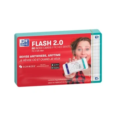 Oxford Flash 2.0 Index Cards A7, Flashcards, 75 x 125 mm, Squared, Mint, 80 Sheets