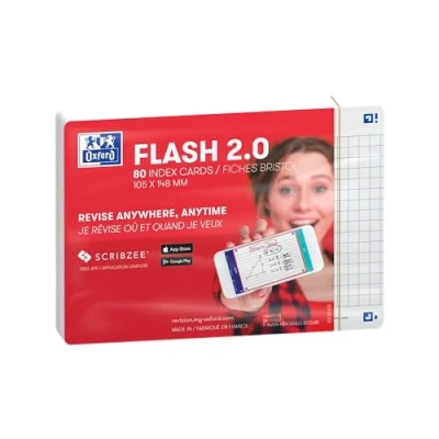 Oxford Flash 2.0 Pack of 80 Cards A6 Format (10.5 x 14.8 cm) Small Squares Double Sided White Frame Bristol