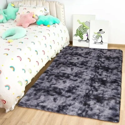 Oxford Homeware Rugs Living Room 60x110 cm Tie Dye Dark Grey Area for Bedroom Anti Slip Modern Super Soft Plush Carpets Fluffy Shaggy Rug Lounge Non Shedding Bedside Kids
