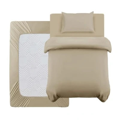 Oxford Homeware Single Duvet Cover Set Beige Brushed Microfiber 3 Piece Bedding with Fitted Sheet and Pillowcase Soft Breathable Sets