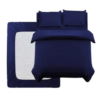 Oxford Homeware Super King Duvet Set 100% Brushed Microfiber 4 Piece Bedding with Fitted Sheet and Pillow cases Soft Breathable Cover Sets Navy