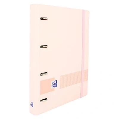 Oxford Live & Go 4 Ring Binder Polyfoam with Refill and Rubber, Size A4+, Removable Board, Sticker Sheet, Replacement Strips 5 Ribbons x Squares, Pastel Pink