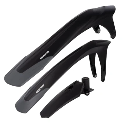 FS Range: The choice for keeping the mud away on a full suspension MTB. The rear fender is designed to fit to the rear swing-arm and front fender is compatible with most suspension forks. Available as a set or individually, with an XL rear fender option for extra mud protection. Includes: Set of MTB mudguards for front and rear wheels, suitable for 27.5" and 28/29" diameter wheel. Max tyre width: 2.5". Front: Fork mounted, compatible with all popular suspension forks with fender length of 690mm. Rear: Swing-arm/Seat-stay fitting with fender length of 600mm. Design: Flexible soft-tail and quick-release bracket for easy fitting and removal.