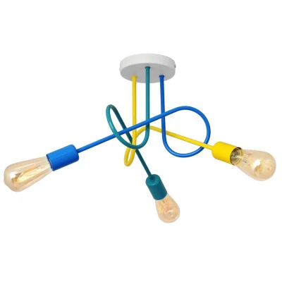 Add the unexpected to your lighting scheme with the Oxford 50cm White, Yellow, Turquoise and Blue 3-Light Multi Arm Semi Flush Fixture. It has a gracefully curved shape for interest. Just add your own decorative bulb for a unique look on this playful fixture that is perfect for warm overhead light.
