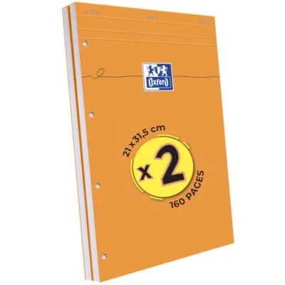 Oxford Pack of 2 A4 Orange Perforated Notepads with Small Squares 5 mm 80 Sheets Stapled Card Cover
