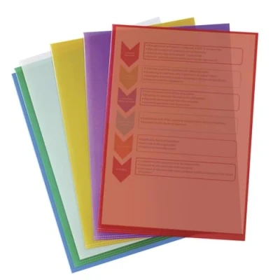 OXFORD Pack of 24 A4 Smooth Plastic Corners Pockets 12/100 Thickness Assorted Colours