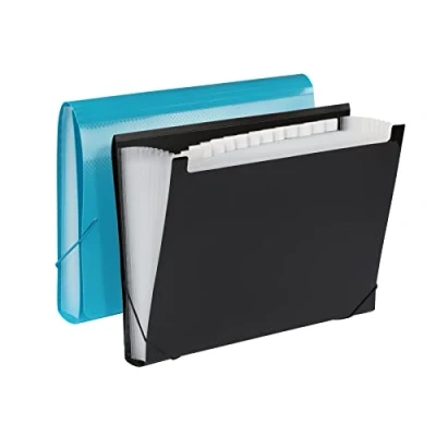 Oxford 7 pocket Plastic Expanding files organize your papers in a glossy, protective case with flap & cord closure; create categories to see your subjects at a glance; versatile blank tabs included Protect mission-critical papers in this wear & tear-resistant poly accordion folder that's tough enough to outlast the school year; durable surface wipes clean with a sanitizing wipe 7 Clear expanding pockets hold letter size sheets; with 6 customizable big tabs to help you sort by project, class or vendor; ideal for school, work or the home office Secure documents behind a protective flap with a cord closure that wraps at the corners; brings instant order to overflowing school work, bills, receipts, mail and more Expandable file organizer 2-packs give you more portable file storage for the money; tame any backpack, desk or counter with this 2 pack in black and blue