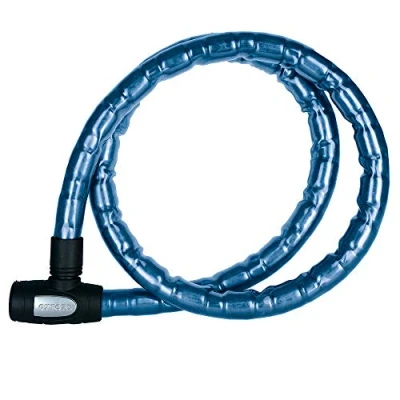 Braided steel cable protected by steel rollers. Oiled and covered a protective vinyl sleeve Nylon covered lock head with dust cover Oxford high security keys