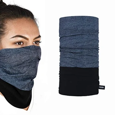 Oxford Products Unisex's Herringbone Polar Fleece Snug Face Covering Head/Neck Loop, Black/Grey, One Size