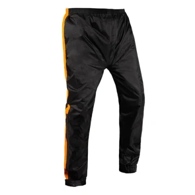 Oxford Rainseal Pant Waterproof Over Trousers for Wet Weather Motorcycle Motorbike Rainwear, Black/Orange, 3XL