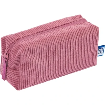 Oxford School Pencil Case, Corduroy 20 cm Stationery Bag, Cosmetic Bag with Floral Lining Bloom Dark Pink