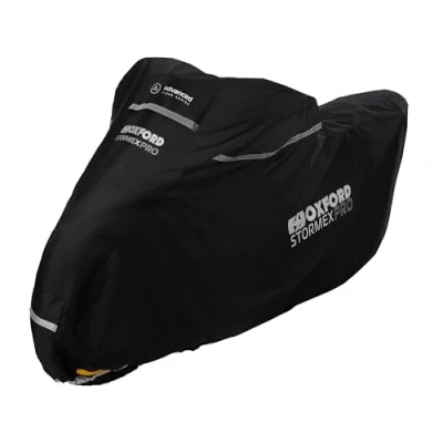 Dual-layered: Outer layer is double-stitched, internally bonded and impervious up to 10,000mm HH. The tethered inner is made from a soft, Protex Stretch material to provide a snug, dust-free fit whilst protecting against potential knocks and scratches. Ventilated: Large top vents have built-in struts which hold them open to ensure maximum breathability. Secure: Chain locks can be employed at both ends, thanks to reinforced eyelets and pockets to keep padlocks off the ground. Weatherproof: Front and rear belly straps hold the cover securely in place whatever the weather and reflective details provide 360-degree visibility for other road users. UV resistant: Stormex Pro is made from UV resistant materials to prevent degradation in sunlight (tested to ASTM154 standards at the Oxford laboratory using our QUV accelerated weather testing machine).