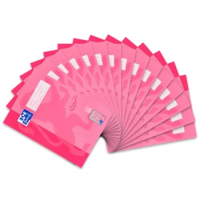 Exercise book in DIN A4 format. With 16 sheets / 32 writeable sides. Silky smooth bright white 90 gsm optic paper. Line style 28 - squared with double margin. No dog-ears thanks to rounded corners. Innovative, velvety soft "touch" feel. Pack of 15 in pink.