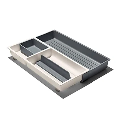 Maximize kitchen storage with this drawer organizing solution Adjustable dividers allow you to customize to keep your tools contained Storage cup is ideal for small items like corn holders and wine stoppers Square corners eliminate gaps in drawers for a clean look Tool-Free Installation
