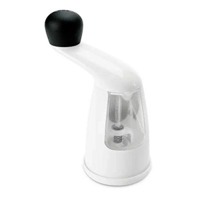 Non-slip, oversized knob is easy to grip and turn Long arm makes grinding easy Clear door shows when to refill and opens wide for filling Ceramic mechanism adjustable for coarse or fine grind Snap on cover for base of mill protects worktops from crumbs