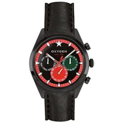 Oxygen Roma 40 Mens Quartz Watch with Black Dial Analogue Display and Leather Strap EX SDT ROM CL BL