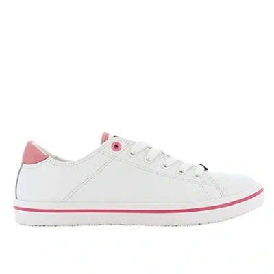 Oxypas 'Paola' Leather, Professional Lace up Shoe with Oxygrip Anti slip Sole (SRC) and static ESD (EU 36, White Fuchsia Trim)