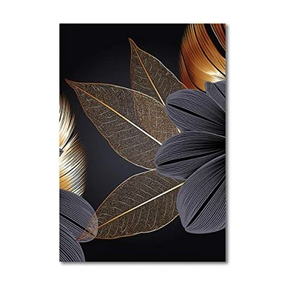 OYFFL Black Golden Leaf Canvas Painting Plant Poster Print Modern Home Decor Abstract Wall Art Nordic Living Room Decoration Picture (2,50 * 70cm Unframed)
