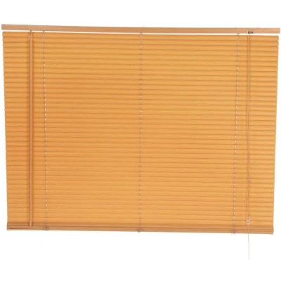 General description Venetian blinds are a quick and easy way to add functional class to your home or office. Made from high-quality PVC with a realistic wood grain effect, these blinds are long-lasting, easy to clean, and resistant to fading. Technical specifications Width: 120 cm Drop: 150 cm Slat Width: 25 mm Installation The blinds are easy to fit and include a complete fixing kit with mounting brackets to ensure a safe and secure installation. Usage The blinds feature an easy-to-control wand to tilt the slats and an auto lock cord for raising and lowering the blinds to the desired height. If needed, the drop of the blinds can also be easily shortened by removing slats to tailor fit it to your window. Other information Please note that these blinds are not suitable for high temperature locations such as conservatories.