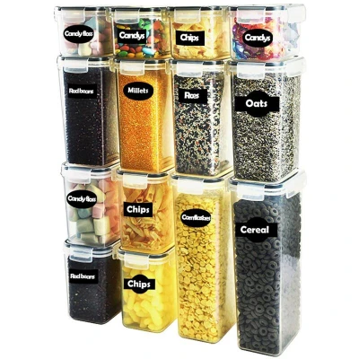 Oypla 14pc Airtight Reusable Plastic Kitchen Pantry Food Storage Container Organiser Set