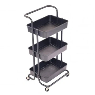 Oypla 3 Tier Black Household Kitchen Bathroom Storage Trolley Cart Shelf