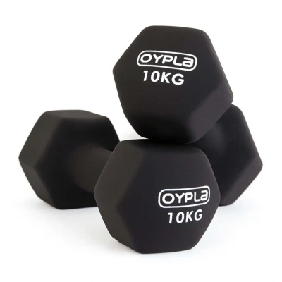 Pair of 10kg Hex Anti Roll Neoprene Non Slip Hand Dumbbells Workout Weights The dumbbell set is ideal for covering home workout use. Each dumbbell has an anti-slip neoprene finish for improved safety and ease use. Perfect for power walking, aerobics, yoga & pilates as well as muscle toning & development. Body fat can be burned more effectively by training with weighted dumbbells, than with bike riding, swimming, or even jogging.