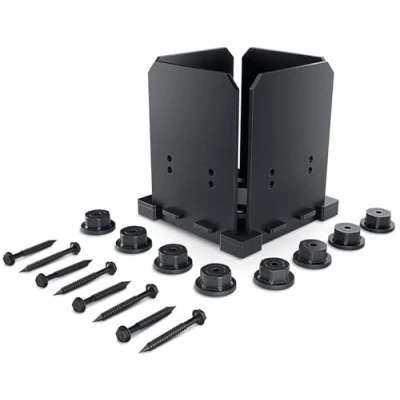 Robust Construction: This post base features 3/16-inch thick hot dipped galvanized and powder coated steel, ensuring durability and resistance to weathering, making it ideal for your pergolas, decks, and other outdoor structures Versatile Compatibility: Designed to fit standard 6x6-inch posts, this deck post base provides a secure fit for your veranda posts, pavilions, and arbors Comprehensive Hardware Kit: This post base includes all necessary hardware: 1 post base plate, 4 decorative plates, 8 hex cap nuts, and 8 (2-3/4") OWT timber screws, ensuring a complete setup for your fence post installations Elevated Base Design: The raised base design keeps wood posts elevated from ground contact, enhancing longevity by preventing moisture damage, making it perfect for wood deck applications Ideal for Various Structures: Recommended for pergolas, decks, verandas, and more, this post anchor is an excellent choice for creating sturdy and reliable outdoor structures, compatible with post brackets for wood posts, Weight: 0.15 Pounds, Manufacturer: Ozco