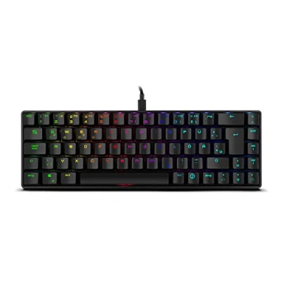 Ultra-compact design: the ozone tactical is a 65% mechanical mini keyboard compatible with Windows, Mac, iOS, Linux and Android. It is a slim, lightweight keyboard that is perfect for space-saving use. outemu red mechanical switches: this ergonomic mini keyboard provides performance and reliability. It has anti-ghosting technology for up to six simultaneous keys. Their pleasant outemu red mechanical switches guarantee excellent touch quality and are perfect for typing. It is a robust and durable keyboard with a guaranteed life of up to 50 million keystrokes. OPTIMIZED DESIGN - This gamer keyboard offers strength, ultra-compact design and unparalleled space optimization to save you every step. Mini wireless mechanical keyboard: ozone tactical is a Spanish mini Bluetooth keyboard with compact design and powerful features. You can connect it via Bluetooth or via USB 2.0 - layout DE With RGB lighting: ozone tactical is a full RGB mini keyboard. All buttons are equipped with RGB backlight. You can change the intensity, direction, speed and colour of the buttons via the intuitive software.