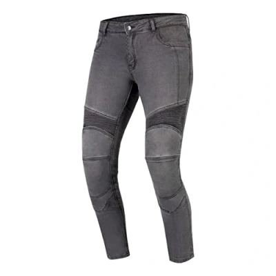 Durable materials - Outer layer: denim jeans. Inner layer: 60% aramid fiber, 40% polyester Safety - Level 2 knee protectors. Pockets for hip and tailbone protectors Pockets - 4 external pockets Comfort - Slim Fit - Pants are perfectly fitted to your figure. Flexible inserts over the knees and on the lumbar ensure freedom of movement Aramid fiber - Flexible and abrasion-resistant inserts made of aramid fibers sewn into the fabric in the knee, hip and seat areas for increased protection