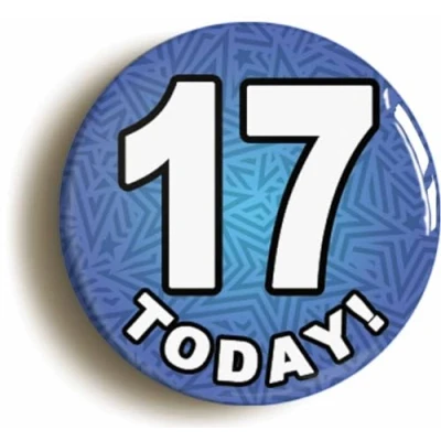 Ozorath 17 Seventeen Today Seventeenth 17th Birthday Badge Button (Size is 2inch / 50mm diameter)