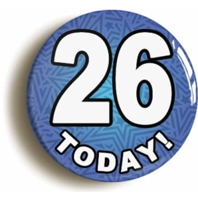 Ozorath 26 Twenty Six Today Sixth 26th Birthday Badge Button (Size is 2inch / 50mm diameter)