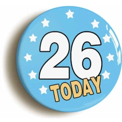 Ozorath 26 Twenty Six Today Sixth 26th Birthday Button Badge (Size is 2inch / 50mm diameter)