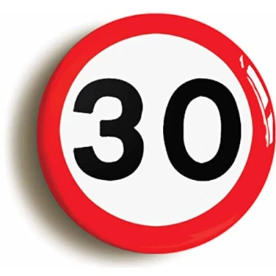 Ozorath 30TH THIRTIETH BIRTHDAY MPH ROAD SIGN BADGE BUTTON PIN (Size is 2inch/50mm diameter)